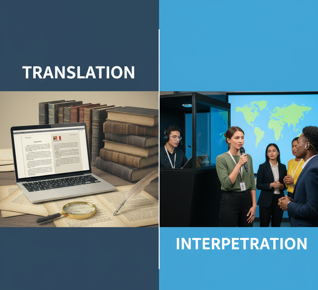 Many people use the words “translation” and “interpretation” as if they are interchangeable. It’s a common assumption that if you’re good at one, you’re automatically good at the other. In reality, while they share the fundamental goal of bridging communication gaps across languages, they are distinct disciplines requiring different skill sets, processes, and even cognitive functions. The simplest way to remember the difference is this: translators work with the written word, while interpreters work with the spoken word.